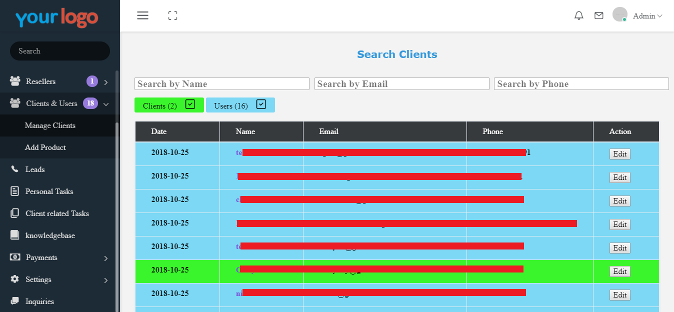 The admin panel comes with inbuilt CRM that will help you manage your clients and resellers. it also allows you to send reminder message on a click of a button.
